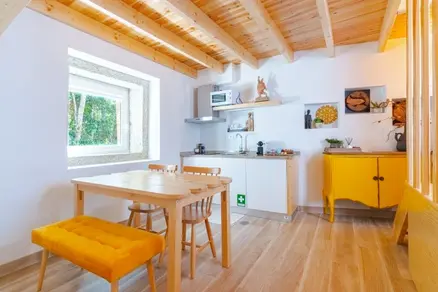 O alojamento será em casas acolhedoras e confortáveis, totalmente equipadas com cozinha e casa de banho privativa, partilhadas por três pessoas. O espaço oferece tudo o que precisas para um descanso profundo e uma experiência verdadeiramente regeneradora.